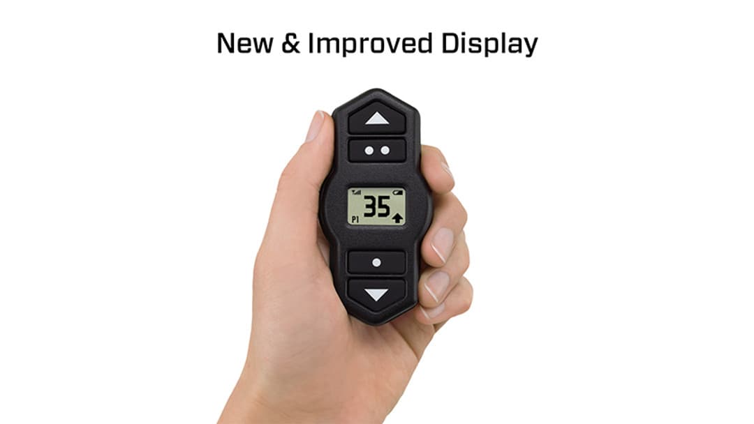 - Compact, wireless handheld controller with LCD display, programmable with up to three user-defined presets