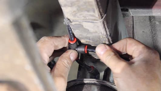 If installing a single-path setup, find a desired tee location on the frame rail or cross member and determine and cut adequate length of air line to reach the tee from the left and right air springs.