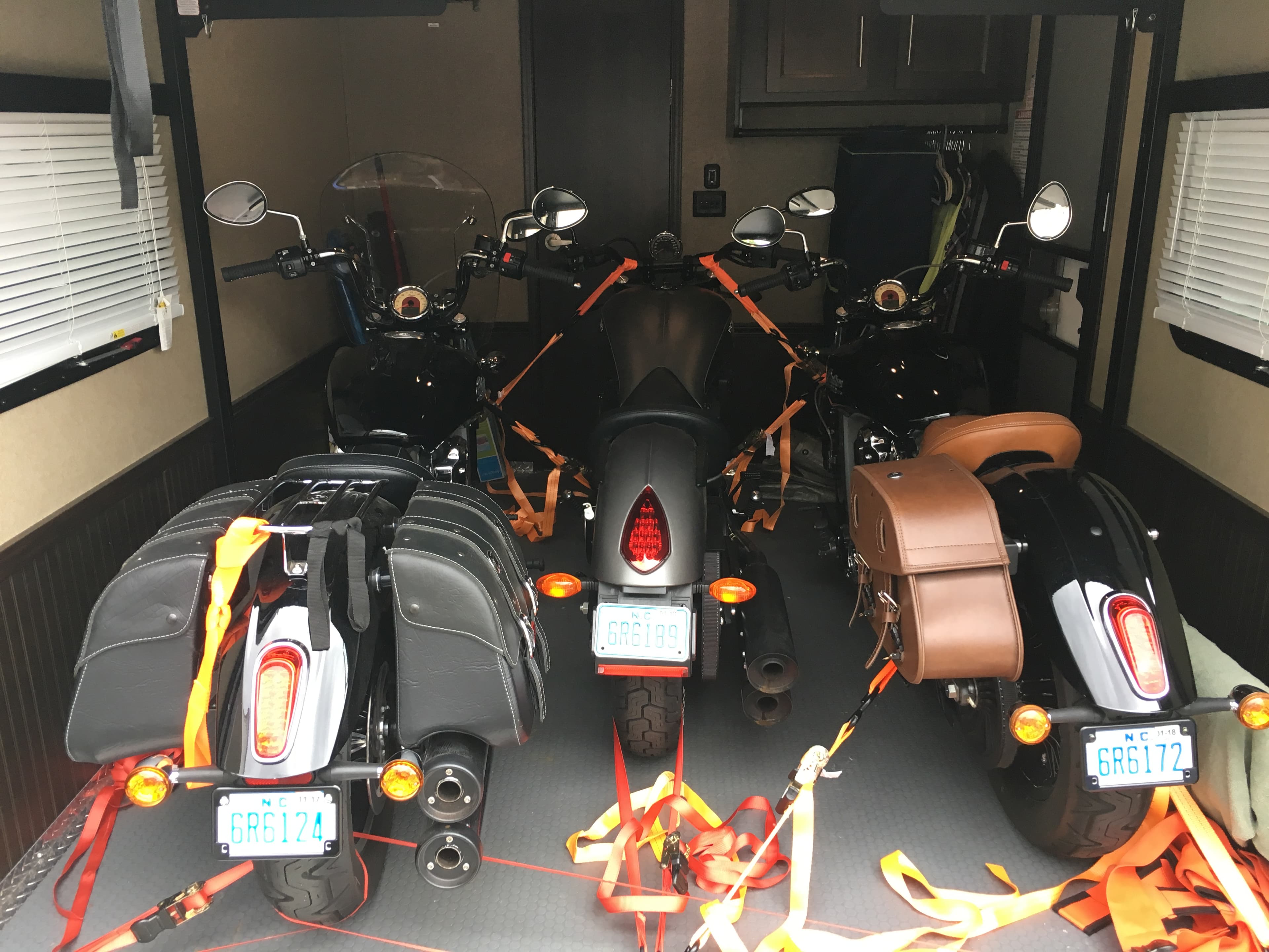 Mark is from North Carolina, close to Fort Bragg, so he and his family typically take trips over to the beaches on the North Carolina coast with their toy hauler, packed up with motorcycles and scuba gear. These trips range from 2-4 hours and can cover up to 200 miles, but they do occasionally head on longer trips south.
