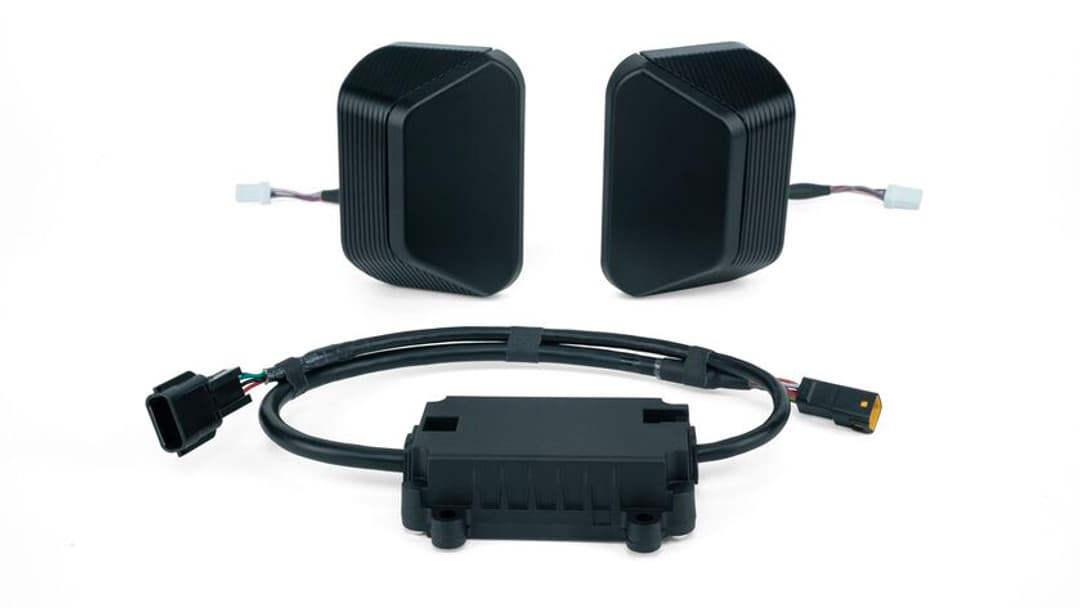 Towtal View LaneGuard Pro by Air Lift offers Blind Spot Detection (BSD), Lane Change Assist (LCA), and Rear Cross Traffic Alert (RCTA) with an extended detection range for continuous monitoring of the vehicle’s surroundings. These features cover blind spots, make lane changes and reversing safer, and include LED light strips mounted on the front of the trailer for clear visuals.