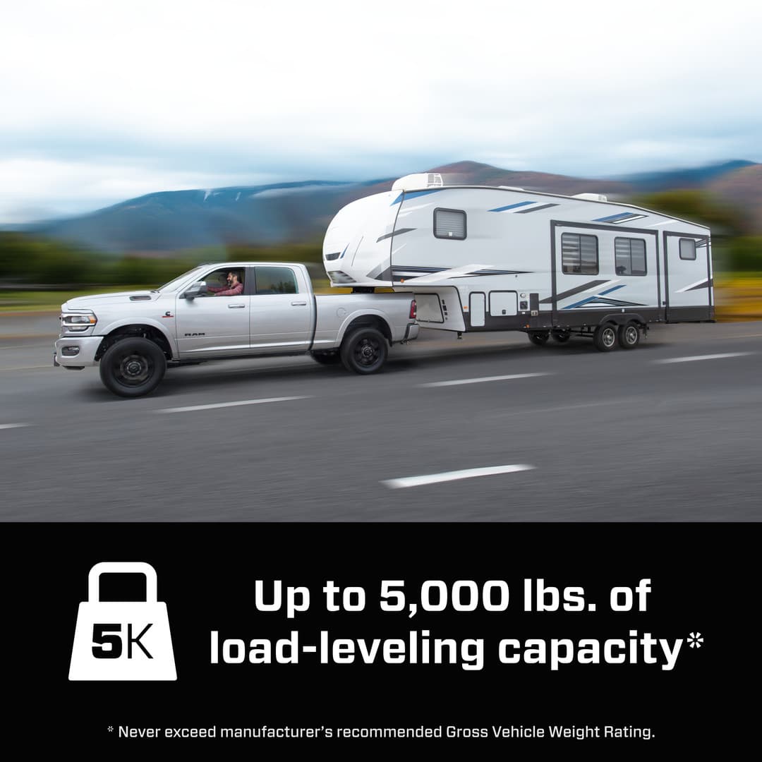 - Adjustable air springs from 5-100 PSI, with up to 5,000 lbs. of leveling capacity*