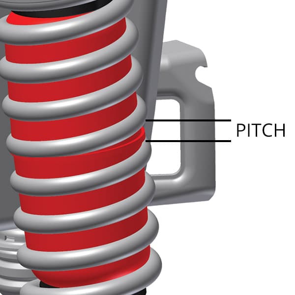 You know that space between each coil ring on a spring? That space is called “pitch.” If that doesn’t make sense, imagine a Slinky sitting on a tabletop. The coil rings are all resting on each other, with no space in between them. In other words, the pitch is non-existent. If you grabbed one end of the Slinky and ran away from someone who’s holding the other end, the pitch is increasing—since the coil rings are stretching further and further away from each other.
