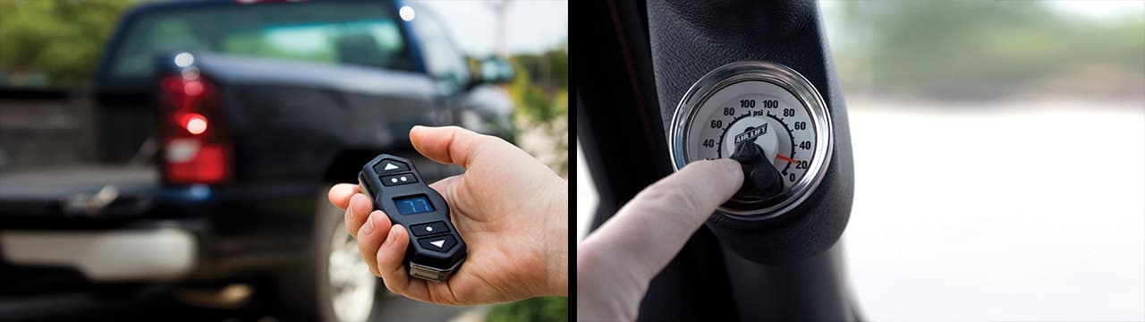 Wireless systems offer a level of convenience that analog systems do not – you can control your air springs from up to 50 feet outside of your vehicle. This makes it easy to see exactly how much pressure you need to level your load, allowing you to stand at the side of the vehicle, press a button on the included controller, and watch as normal ride height is restored. This means there’s less hassle, no need to climb in and out of your vehicle as you adjust your air spring pressure.
