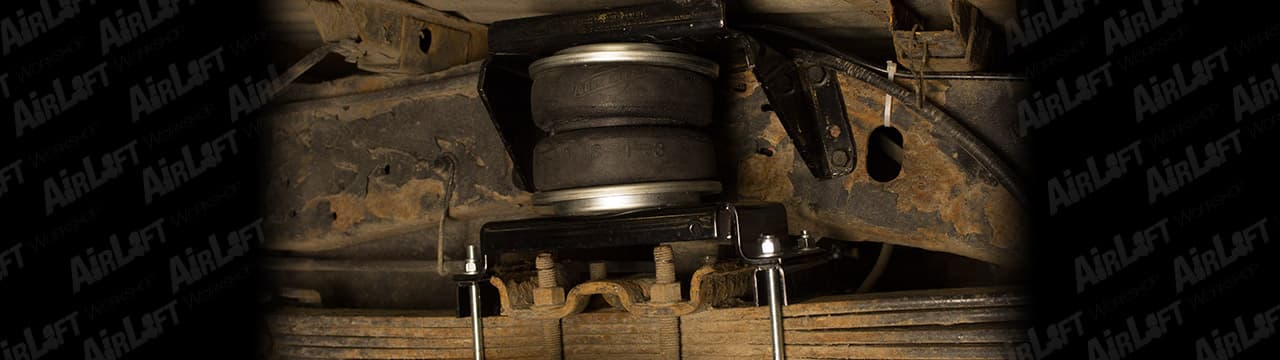 For vehicles with leaf springs, we engineered the air spring assemblies to mount on top of your existing leaf springs and connect to the frame. This design allows for the leaf springs to continue to do their job, while the air springs, with air pressure added, provide extra leveling and support when towing or hauling heavy loads. Our leaf-spring-compatible kits – the LoadLifter 5000 Ultimate – includes an internal jounce bumper, which replaces the factory jounce bumper and prevents the vehicle from bottoming out on harsh roads or under extreme loads.