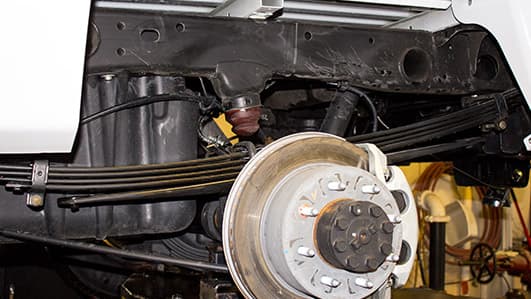 On vehicles equipped with leaf spring suspensions, the bump stop is typically mounted between the axle tube and the chassis side rail.