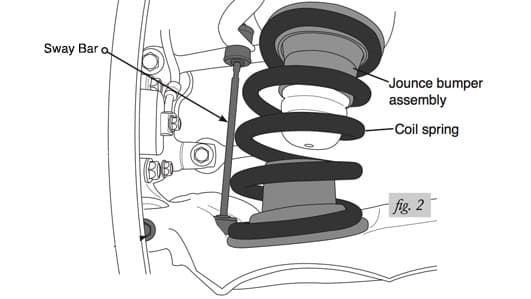 On vehicles equipped with coil spring suspensions, the jounce bumper is typically mounted on the bottom of the frame at the top of the coil spring.